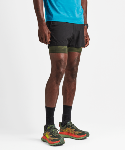 Run Amok’s layered short. Made with a lightweight, microperforated 4-way stretch fabric. An exposed, integrated breathable compression liner features a phone ready pocket. The shell maintains Run Amok’s attention to detail with two magnetic close slash pockets, back zip pockets and enhanced ventilation. Created with intention for everyday athletic use. Best Used For: Training, Running