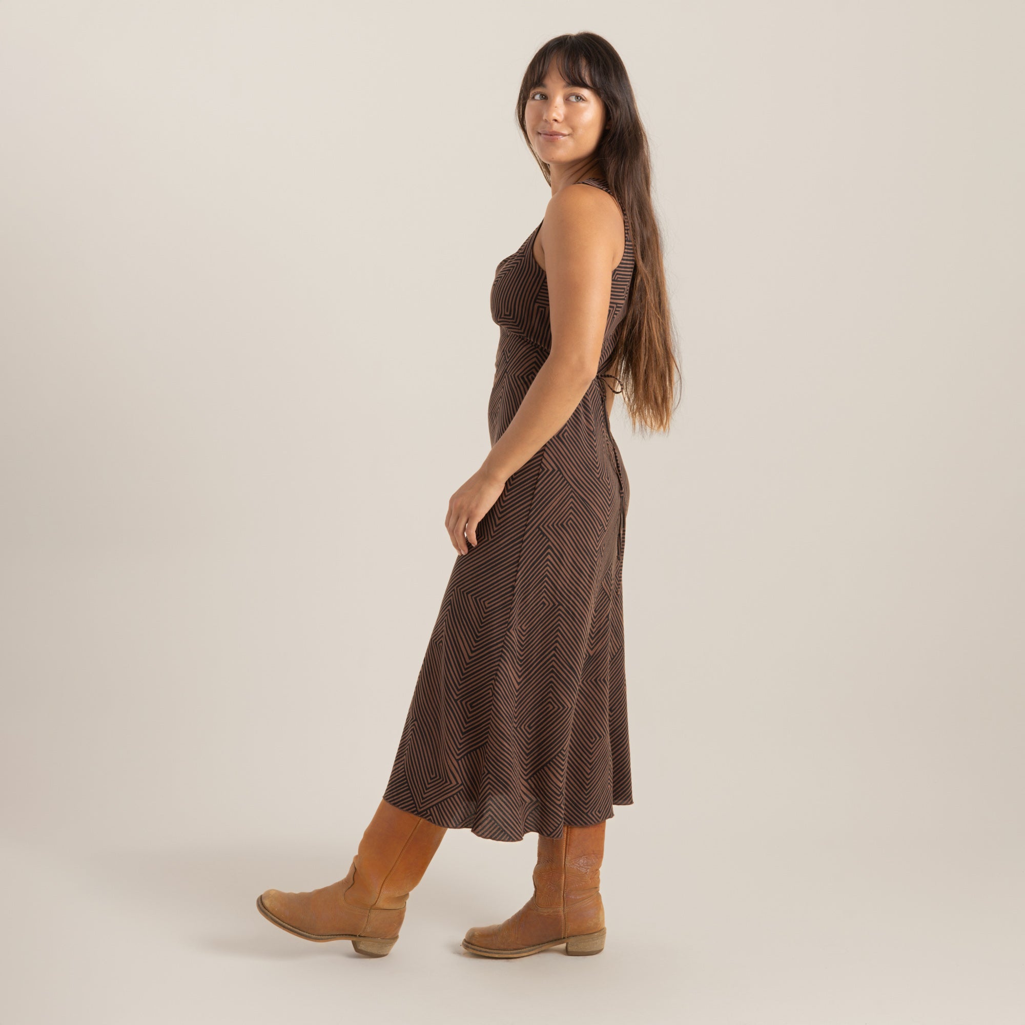 We needed a vintage-inspired dress that we could dance in the moonlight with—seriously. Featuring a drapey cut and delicate tie-back and button detail, this lightweight, mid-rise summer dress can be worn anywhere—day or night. Under the sun or the moon, she’s sure to turn heads in the light.